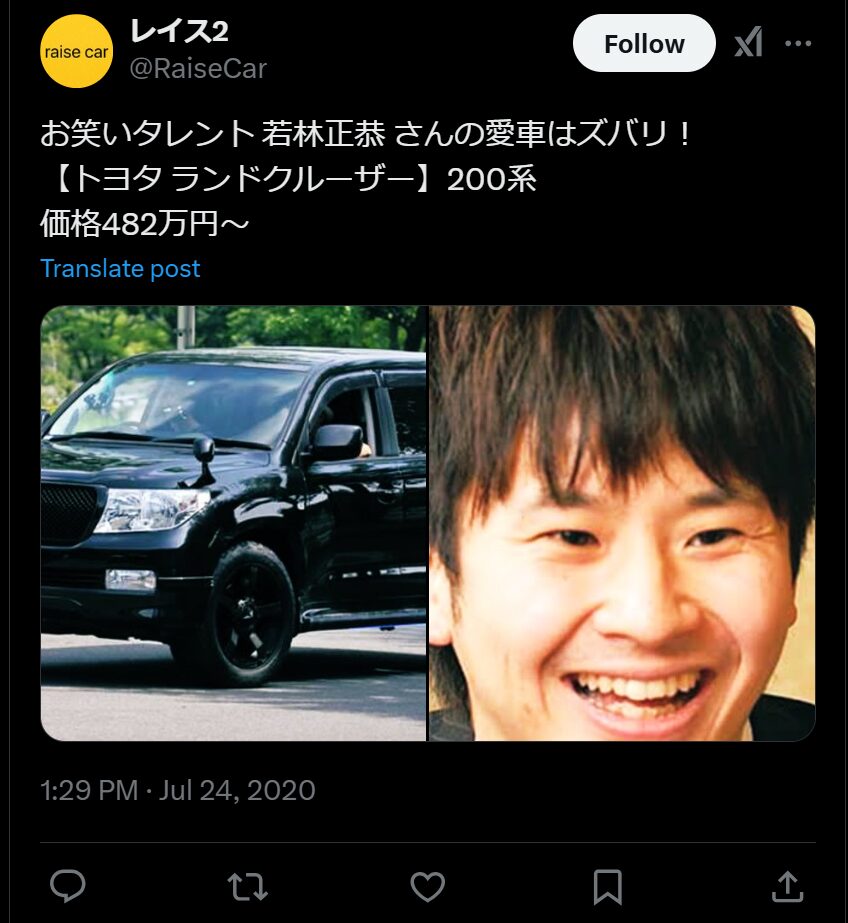 そんな若林さんは2013年に念願のランドクルーザーを購入しています。購入価格は新車で450万円以上の車です。しかし念願のランクルに乗るも、アンタッチャブルの山崎弘也さんに「お前がランクル乗るなんて引くわ」といじりまわされてしまい手放してしまったといいます。