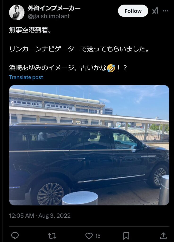 価格はおよそ1000万円前後といわれており、かなりの重厚感が特徴の車といえます。浜崎さんはどちらかといえば「ゴツい」印象の車が好きと言われており、リンカーンの前はベンツやベントレーなど大きい車に乗っていたようです。