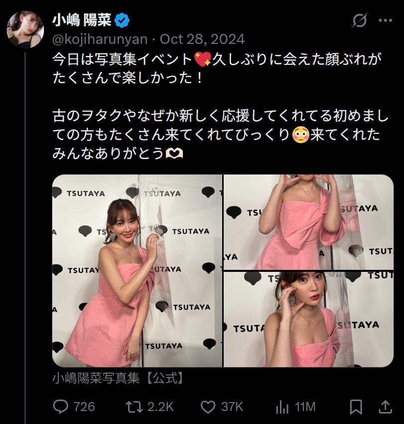 「今日は写真集イベント、久しぶりに会えた顔ぶれがたくさんで楽しかった! 古のヲタクやなぜか新しく応援してくれてる初めましての方もたくさん来てくれてびっくり。来てくれたみんなありがとう」