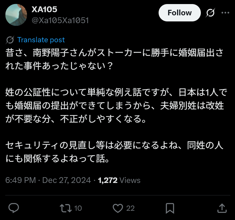 パスポートを取るために戸籍謄本を取り寄せると見知らぬ男性と結婚していることがわかったそうです。調べるとファンが彼女の個人情報を調べあげ、勝手に婚姻届けを提出してしまっていたといいます。