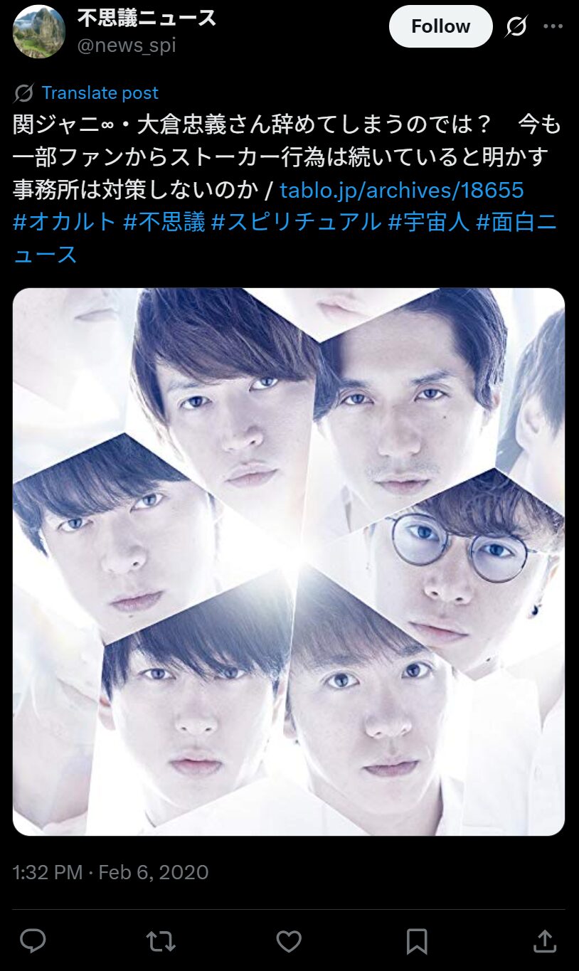 大倉忠義さんはアイドルグループ「SUPER EIGHT」のメンバー。彼は仕事場にまでファンが押しかけてくることに苦言を呈したことがあります。