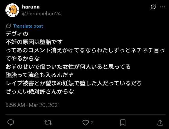 さらにブログ内でも「私の発言によって、不妊治療に当たっている方々、中絶せざるをえなかった方々等を心ならずも傷つけてしまったり、不快な思いをさせてしまったことは残念であり大変申し訳なく思っております。」と謝罪しました。