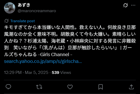 杉浦太陽さんは元アイドル辻希美さんの夫でありタレント。彼は情報番組で乳がんに対する発言が炎上したことがあります。