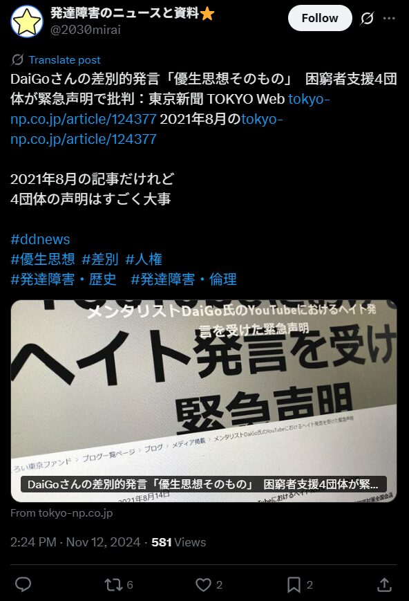 DaiGoさんは政治家・竹下登氏の孫でもあるメンタリストでありユーチューバー。彼はライブ配信でホームレスや生活保護受給者に対する差別発言をし炎上してしまいました。