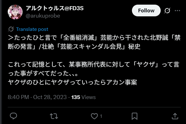 これまで関西が中心で全国区ではなかったために見逃されていた部分もあったそうですが、この発言は見逃してもらえなかったようです。おそらく芸能界復帰は無理だろうと思われていた北野さん。