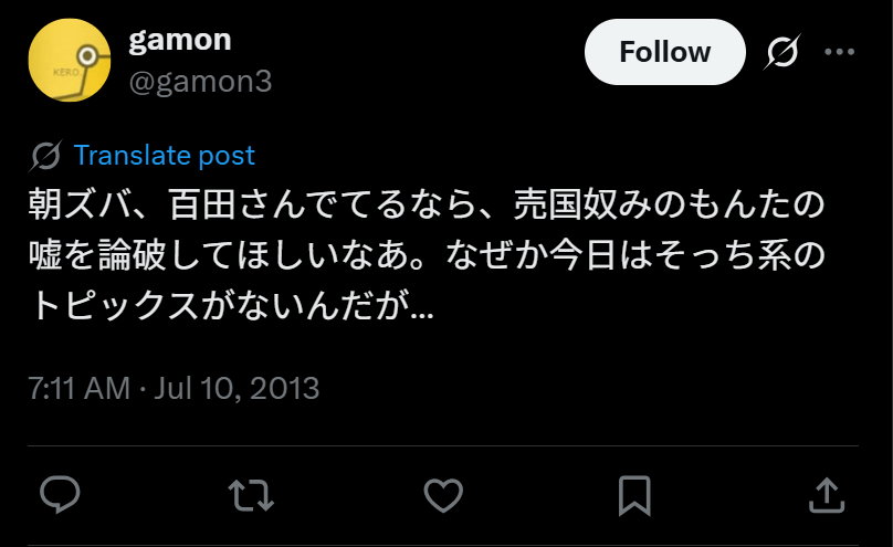 彼は2011年にTBSテレビ「みのもんたの朝ズバッ!」で、